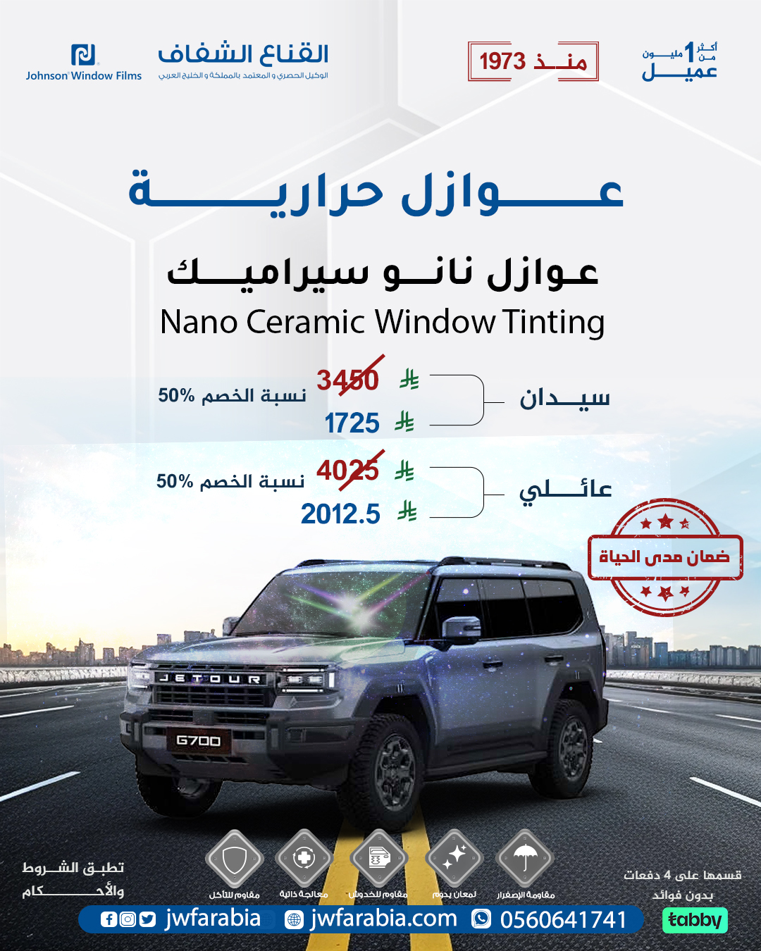 نانو سيراميك: توفر أداءً حراريًا مميزًا باستخدام تقنية السيراميك النانوي، مع تقليل كبير لاختراق الأشعة فوق البنفسجية والحرارة.