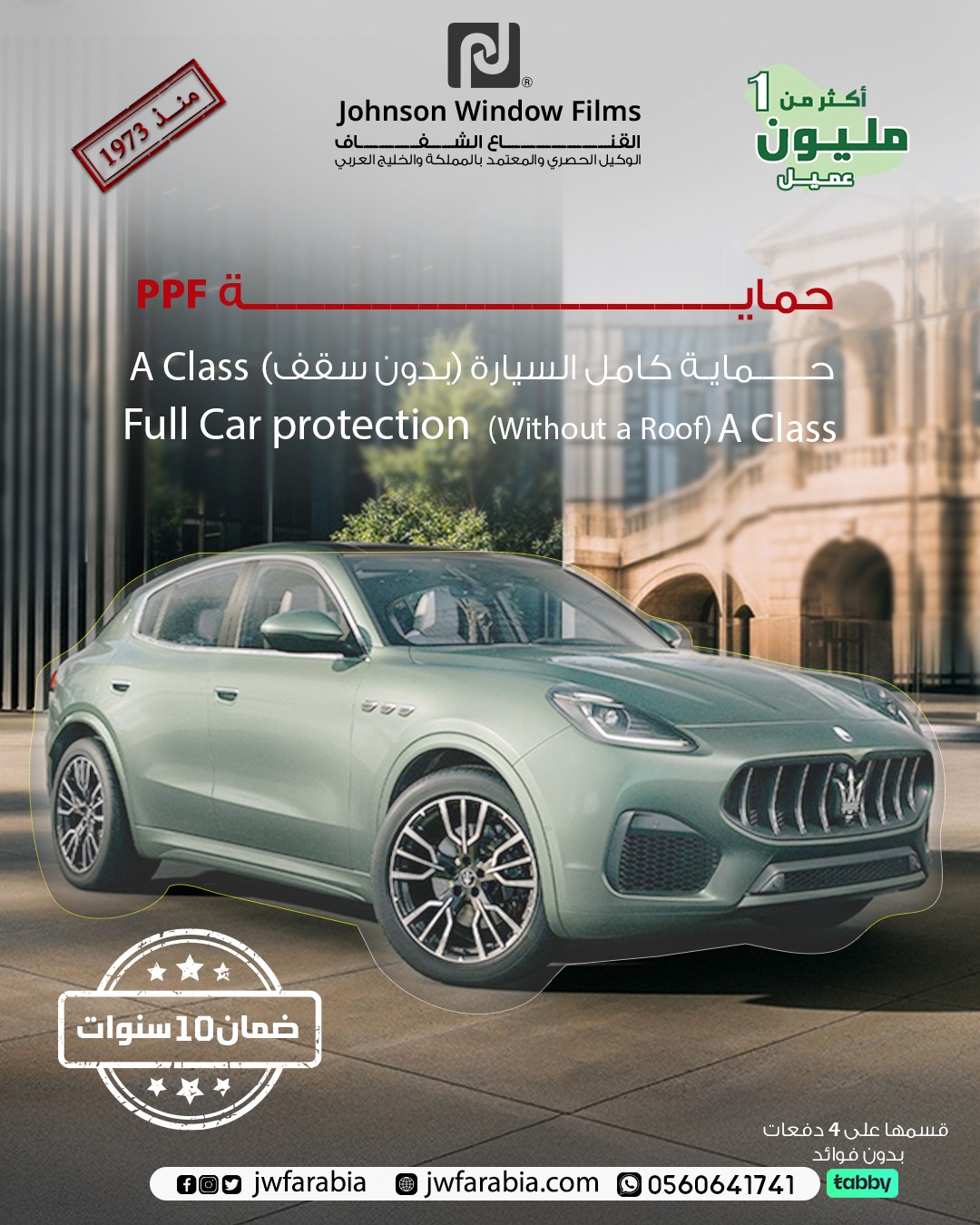 Full Vehicle Protection A Class: Comprehensive coverage of all vehicle parts using high-quality films with advanced features such as self-healing and maximum resistance to environmental factors.”