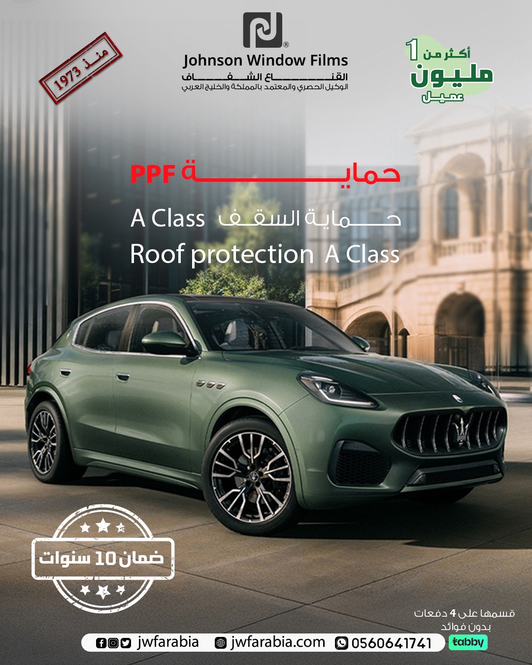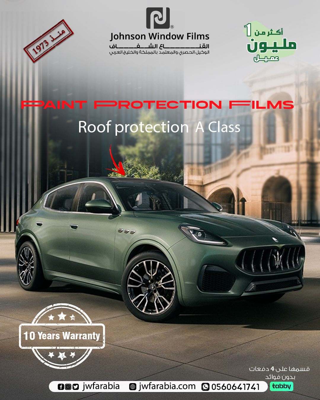 Roof Protection A Class: Protection for the top of the vehicle using luxurious high-performance films.”