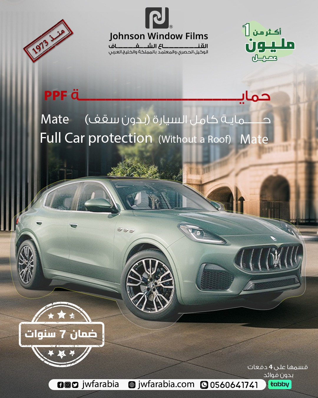 Full Vehicle Protection Mate: A protective layer with a matte finish (Mate) to change the vehicle’s appearance and add a unique touch while maintaining full protection.”