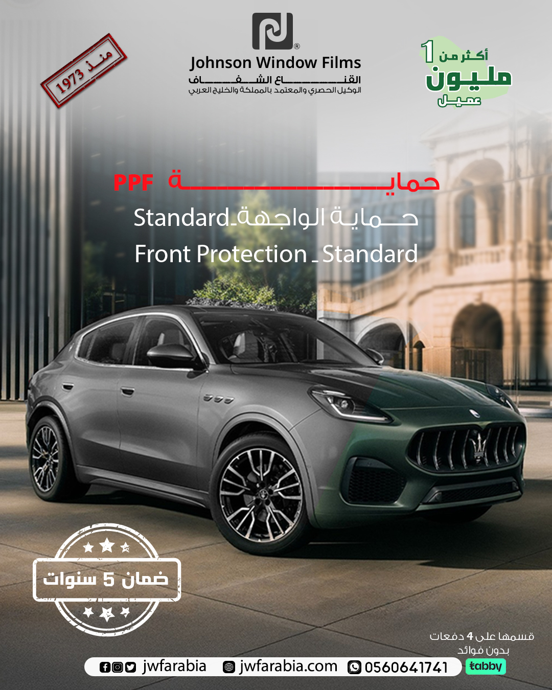 Standard Front Protection: Coverage of the main front area including the bumper, part of the hood, and front fenders to protect against common damage during daily driving.”